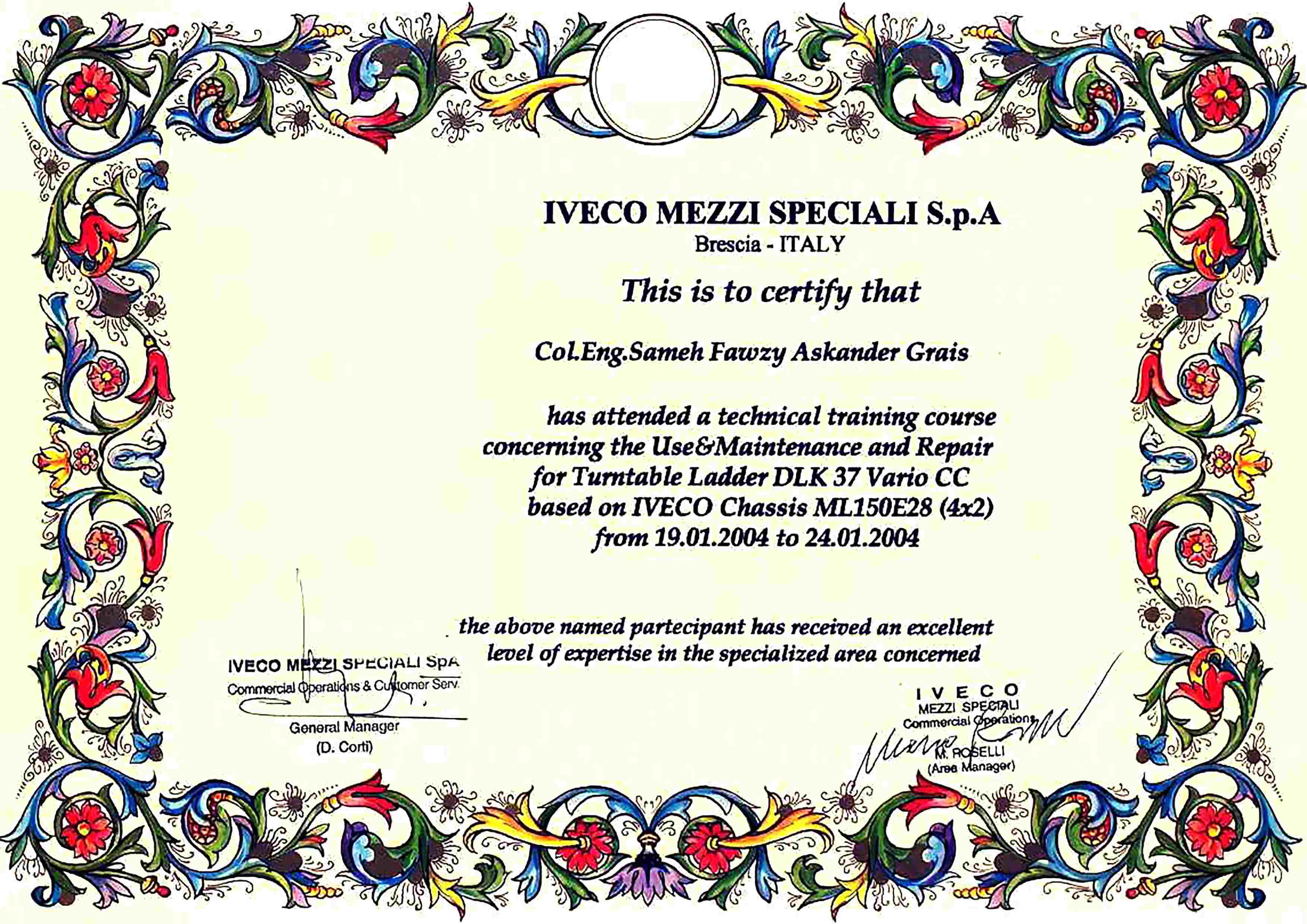 Technical Training Course Concerning the Ladder DLK 52 VARIO - IVECO (Dec. 1998)